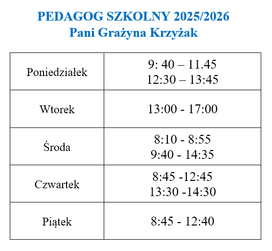 Pedagog szkolny: mgr Grażyna Krzyżak