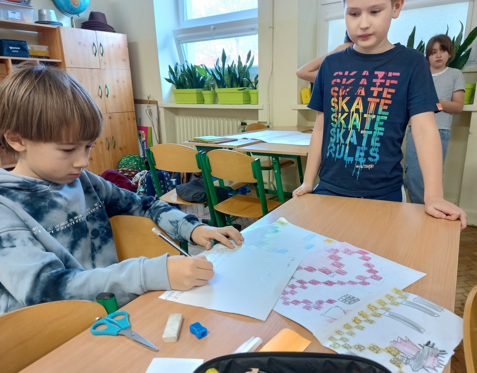 Zajęcia były pełne ciekawostek, inspirujących rozmów i pomysłowych działań, które nie tylko poszerzyły wiedzę uczniów, ale także pomogły rozbudzać kreatywne myślenie.
