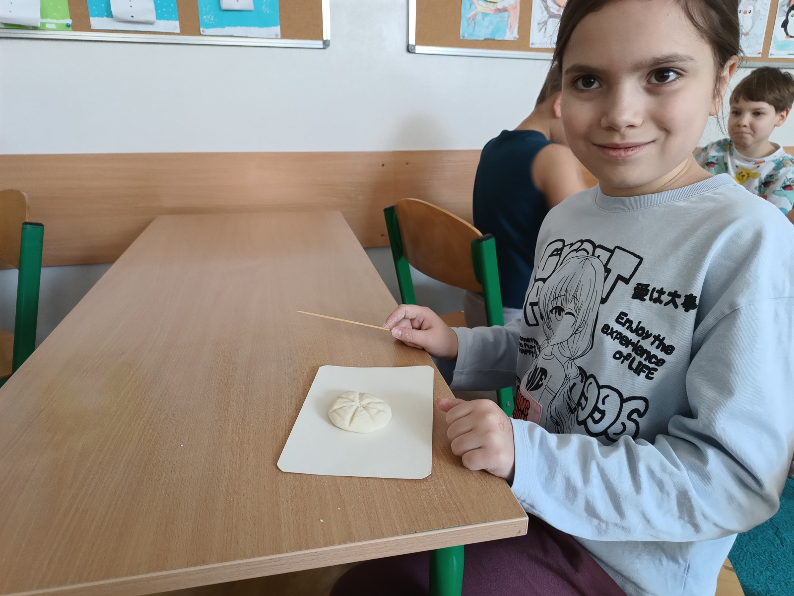 Na zakończenie całego cyklu zajęć trzecioklasiści sami spróbowali swoich sił w „pieczeniu chleba”. Z masy solnej lepili różne rodzaje pieczywa. Powstały  bułeczki, rogaliki, obwarzanki, precelki a nawet pizza.