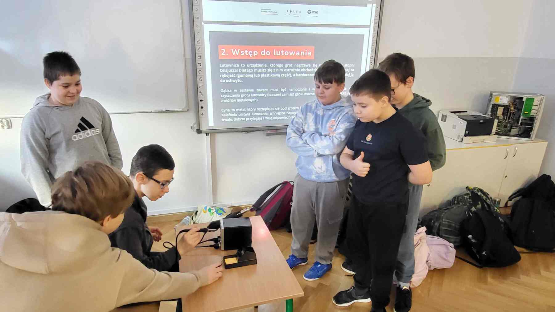 W I półroczu roku szkolnego 2025/2026 w szkole odbyły się inspirujące zajęcia w ramach ogólnopolskiego programu edukacyjnego Ignis – „Klucz do Kosmosu”, realizowanego przez Polską Agencję Kosmiczną (POLSA) w związku z misją kosmiczną IGNIS. Celem projektu jest rozwijanie kompetencji inżynieryjnych, kreatywności oraz zainteresowania naukami ścisłymi wśród młodzieży. Podczas zajęć uczniowie mieli okazję samodzielnie zbudować klucz telegraficzny – urządzenie elektroniczne składające się z obwodu klucza oraz sygnalizatora dźwięku i światła – które pozwala nadawać komunikaty alfabetem Morse’a. To praktyczne ćwiczenie wymagało od młodych konstruktorów poznania podstaw elektroniki i lutowania, a także alfabetu Morse’a, co dodatkowo rozwijało ich umiejętności techniczne i logiczne.