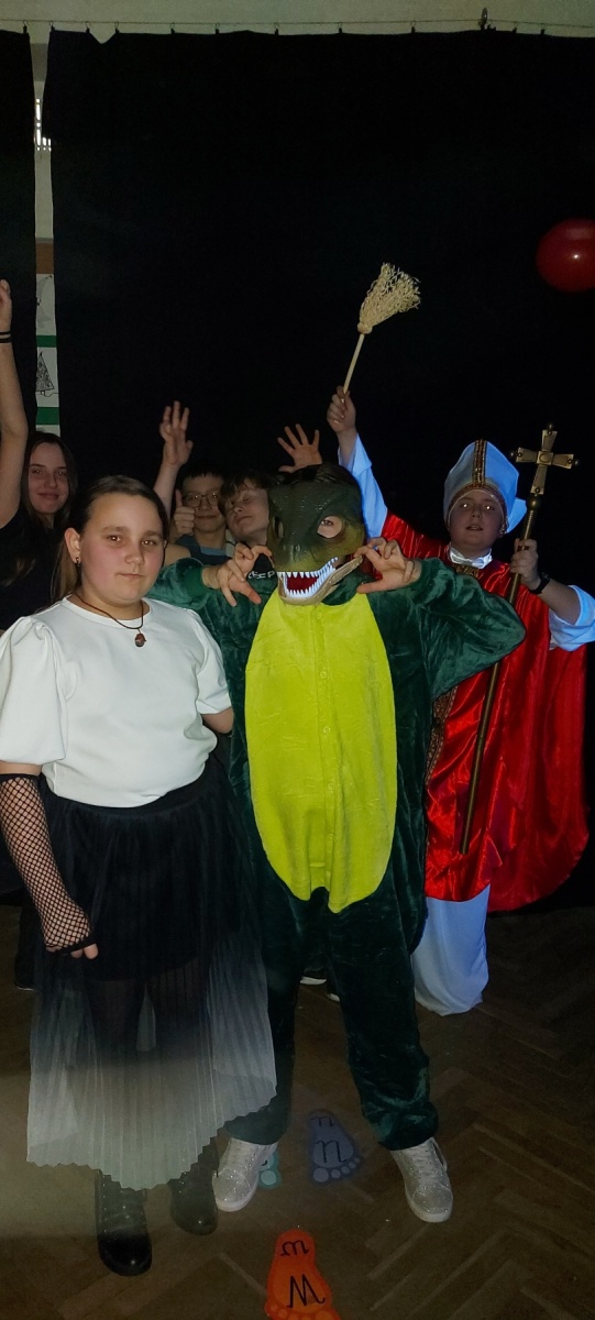 17 lutego 2026 roku odbył się barwny bal karnawałowy dla uczniów klas 4–8, zorganizowany w ramach tradycyjnych ostatków. Tego dnia szkolny hol zamienił się w kolorową krainę pełną muzyki i ruchu, a uczestnicy pojawili się w pomysłowych kostiumach, przebierając się za różnorodne postacie — od bohaterów bajek i filmów, po zwierzęta, magów i superbohaterów. Wyjątkowy klimat stworzyły efektowne światła, lasery i mgła, dzięki którym zabawa nabrała prawdziwie magicznego charakteru. W programie nie zabrakło wspólnych tańców — na parkiecie królował pełen energii „Pociąg”, a także bardzo lubiana „Belgijka”, która porwała do tańca niemal wszystkich uczestników. Bal był doskonałą okazją do integracji, radosnej zabawy oraz chwili wytchnienia od codziennych obowiązków. To wydarzenie z pewnością pozostawi w pamięci uczniów wiele ciepłych i wesołych wspomnień.