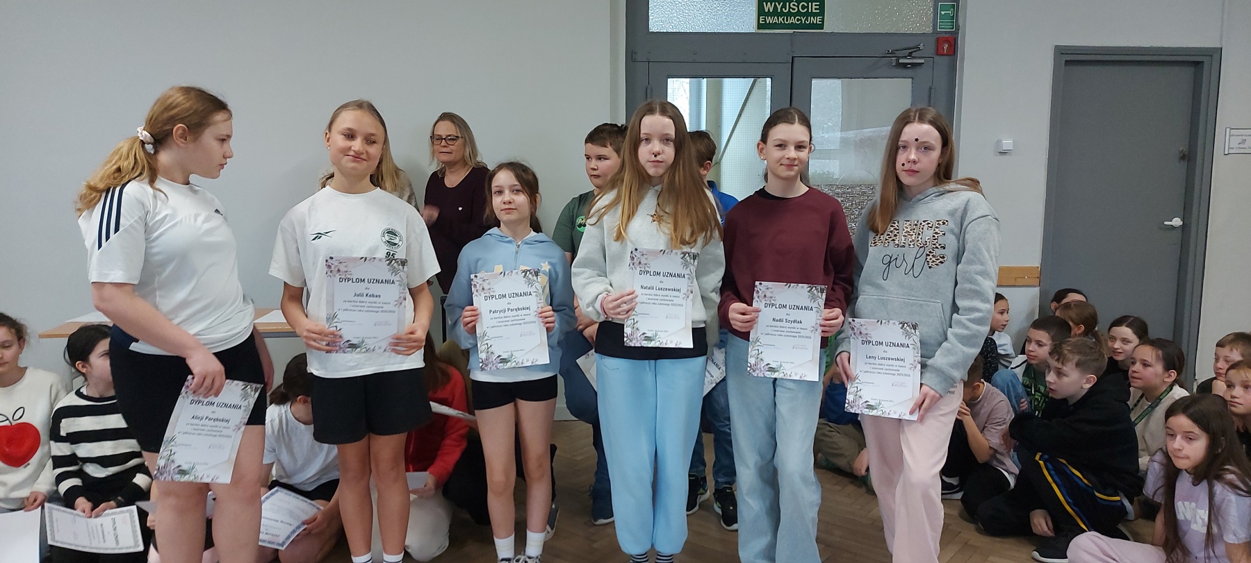 18 lutego 2026 r. odbył się apel dla uczniów klas IV–VIII, podczas którego dyrektor szkoły – pani Tatiana Muszyńska‑Kwiecień, podsumowała pracę i osiągnięcia uczniów w pierwszym półroczu. Pani dyrektor podziękowała uczniom za wysiłek, zaangażowanie oraz odpowiedzialną postawę, a także pogratulowała osiągniętych rezultatów. Uczniom, którzy w wyniku klasyfikacji śródrocznej uzyskali średnią ocen 4,75 lub wyższą oraz wzorową ocenę zachowania,  pani dyrektor zgodnie ze statutem szkoły wręczyła Dyplomy Uznania.