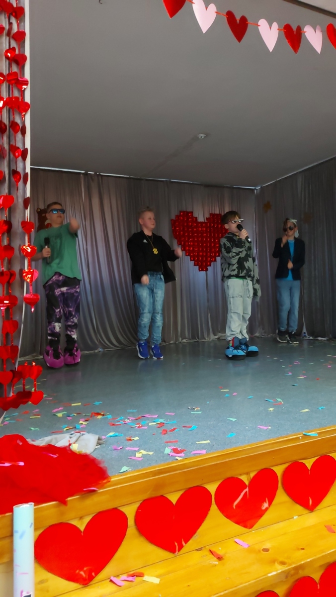 26 lutego 2026 r. w szkolnej stołówce odbył się coroczny konkurs piosenki obcojęzycznej „Love Liebe Amor”, organizowany z okazji Walentynek. Choć święto zakochanych w tym roku wypadło w ferie, nie przeszkodziło to uczniom w stworzeniu wyjątkowego wydarzenia. Do konkursu zgłosiło się wyjątkowo wielu chętnych – swoje reprezentacje wystawiły klasy 4B, 4C, 5A, 5B, 6C oraz 8B. Na scenie pojawili się liczni soliści oraz aż trzy zespoły, które zadbały o muzyczną różnorodność i energię całego przedsięwzięcia. Publiczność mogła usłyszeć takie przeboje jak: End of Beginning, Believer, Barbie Girl, Another Love. Na przemian wybrzmiewały energiczne rockowe rytmy oraz bardziej nostalgiczne, nastrojowe utwory. Widownia słuchała jak zaczarowana, a konfetti, taniec i ogrom emocji stworzyły atmosferę prawdziwego muzycznego święta.