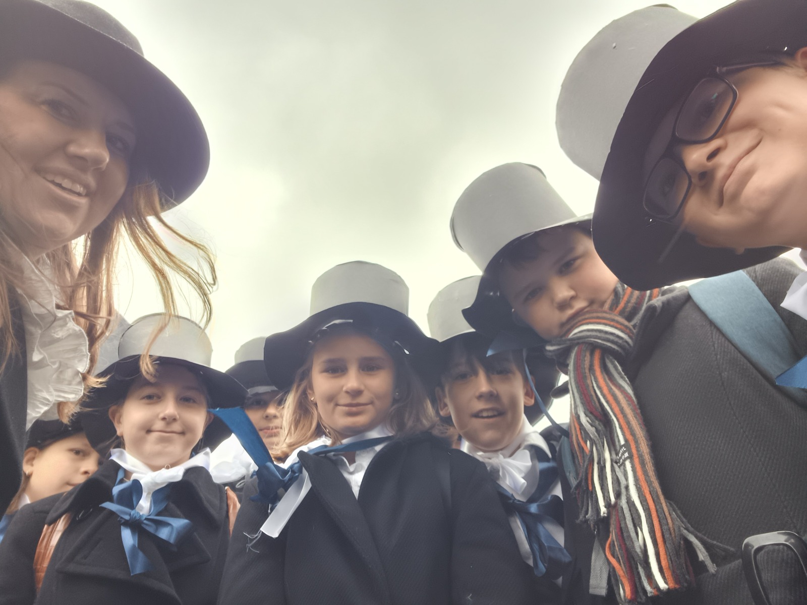 do szkoły w starannie przygotowanych strojach, z pomysłowymi rekwizytami