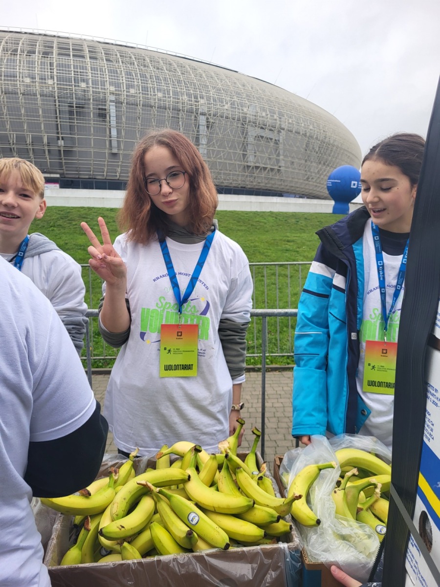 26 września 2025 r., uczniowie klasy 7b, a zarazem członkowie Szkolnego Koła Wolontariatu, uczestniczyli w pierwszych w Krakowie Targach Wolontariatu i Projektów Organizacji Pozarządowych. Wydarzenie odbyło się w sali MDK „Dom Harcerza” przy ul. Reymonta i zgromadziło przedstawicieli kilkudziesięciu stowarzyszeń oraz instytucji prowadzących działalność charytatywną na rzecz dzieci, młodzieży, dorosłych i seniorów. Wśród organizacji poszukujących młodych wolontariuszy znalazły się m.in. Hospicjum św. Łazarza, Fundacja Anny Dymnej „Mimo wszystko”, Dział Rewitalizacji Społecznej MOPS czy Centrum Obywatelskie Centrum C. Nasi uczniowie uczestniczyli również w warsztatach przygotowanych przez panie z Centrum Aktywności Seniora Prądnik Czerwony. Ich zadaniem było opracowanie pomysłu na akcję wolontariacką łączącą młodych ludzi i seniorów. Dzięki temu doświadczeniu siódmoklasiści zobaczyli, jak wiele osób czeka na wsparcie i jak wiele możliwości otwiera się przed młodymi, którzy chcą działać na rzecz innych.
