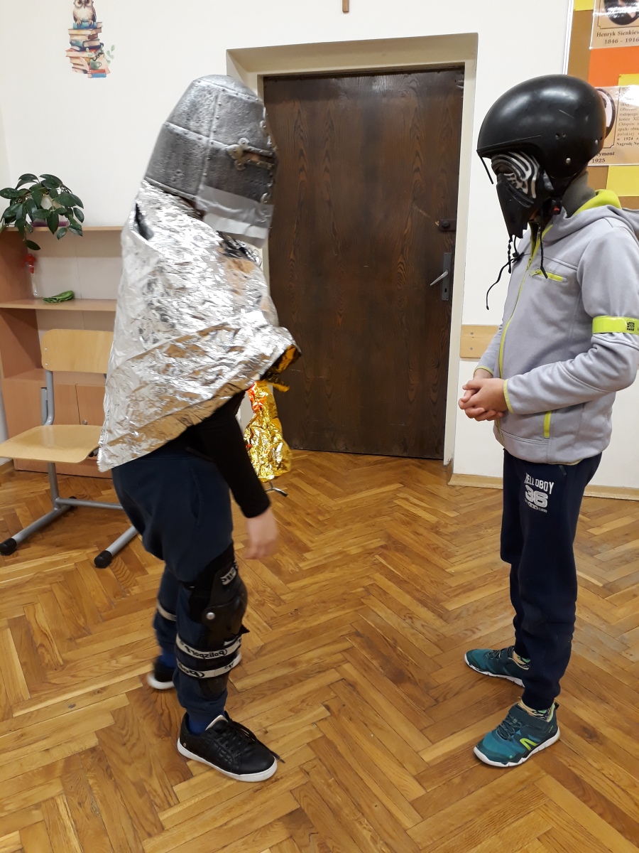 do szkoły w starannie przygotowanych strojach, z pomysłowymi rekwizytami