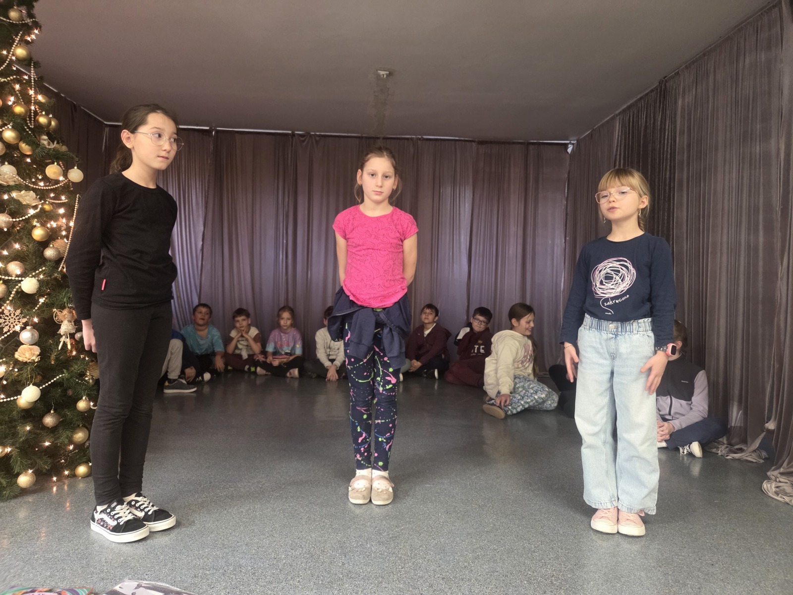 Uczniowie uczestniczą w ćwiczeniach teatralnych, doskonalą poprawną artykulację oraz rozwijają kompetencje w zakresie ruchu scenicznego i ekspresji ciała.