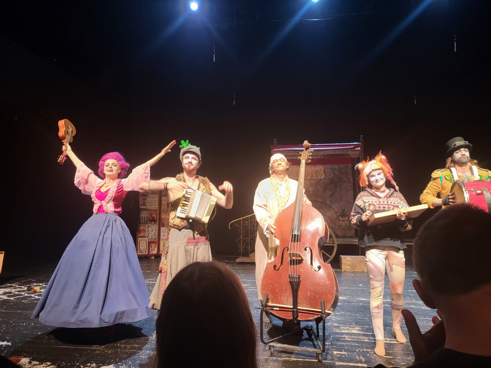 Pieniądze, kasa, szmal, mamona, forsa… To tylko niektóre synonimy słowa, które zwłaszcza w okresie przedświątecznym, nader często pada z naszych ust. Czy jednak naprawdę, życie człowieka powinno być podporządkowane zdobywaniu bogactwa i gromadzeniu dóbr? Czym jest dla nas rodzina? Czy potrafimy współczuć i pomagać innym? Wreszcie, czy umiemy cieszyć się życiem? Na te i inne pytania mogli sobie odpowiedzieć uczniowie klasy 6a, którzy 18 grudnia 2025 r. mieli okazję obejrzeć spektakl „Opowieść wigilijny” w reżyserii Marii Wojtyszko i Jakuba Krofty.  A była to opowieść nietypowa, gdyż do znanego tekstu Charlesa Dickensa, dołączyła zabawna cyrkowa trupa komentująca, jak grecki chór, losy głównego bohatera, Ebenezera Scrooge’a. Było zabawnie, przerażająco, a czasami także refleksyjnie. Ta pełna barw i kolorów, niezwykłej muzyki i tańca historia to wspaniała okazja, aby wczuć się w nastrój nadchodzących świąt i pomyśleć o tym, co w naszym życiu jest najcenniejsze.