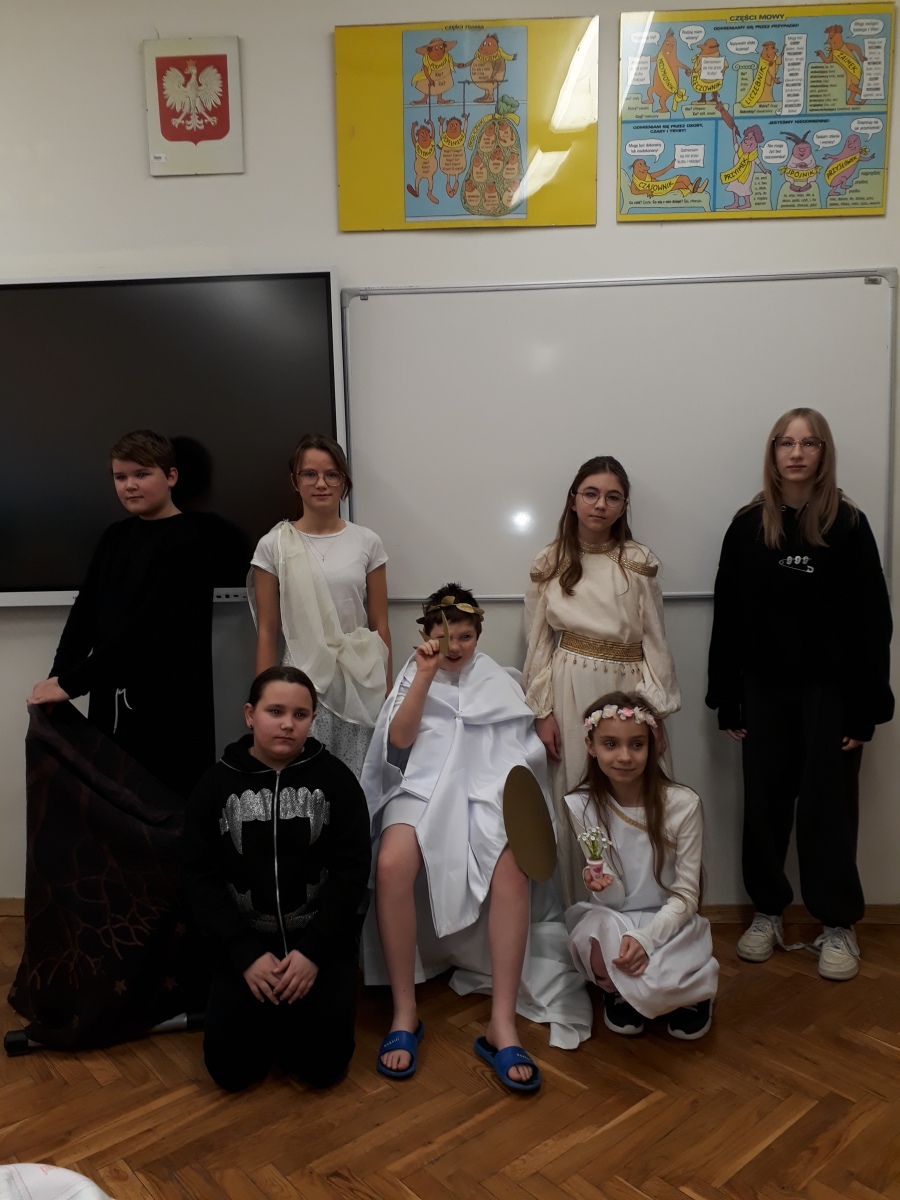 20 lutego 2026 r. uczniowie klas 5A i 5B udali się do Teatru Groteska na spektakl pt. „12 prac Heraklesa”. Przedstawienie przeniosło piątoklasistów  w świat mitologii greckiej i niezwykłych przygód legendarnego bohatera. Spektakl rozgrywał się w czterech planach – na scenie mogliśmy zobaczyć aktorów w żywym planie, aktorów w maskach, lalki oraz teatr cieni. Taka różnorodność środków wyrazu sprawiła, że opowieść była dynamiczna i pełna artystycznych wrażeń. Oprawa plastyczna przedstawienia nawiązywała do sztuki greckiej. Muzyka  inspirowana była tradycją starogrecką i grecką muzyką współczesną. Wyjście do teatru było nie tylko okazją do spotkania z kulturą, ale także ciekawą lekcją mitologii w artystycznym wydaniu.