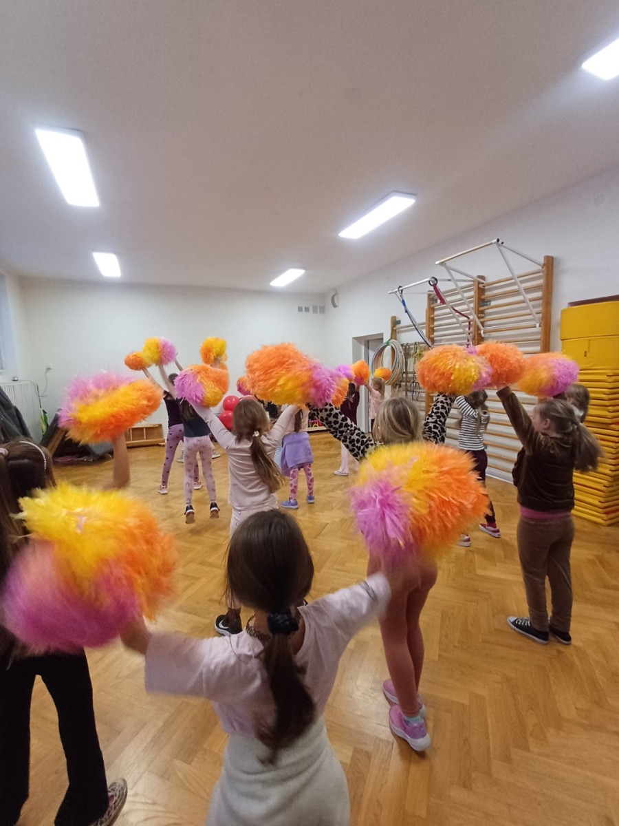 dzieci uczą się ciekawych układów tanecznych z pomponami do najnowszych utworów muzycznych, Zajęcia wspierają naturalną ekspresję ruchową dzieci, uczą jak przełamywać swoje słabości, uczą pewności siebie. Zajęcia budują więzi koleżeńskie i przyjacielskie pomiędzy uczestnikami zgodnie z maksymą : Jeden za wszystkich, wszyscy za jednego . W czasie zajęć dzieci nie tylko uczą się pięknych układów tanecznych z pomponami, ale rozwijają: odwagę, otwartość, odporność na stres, tolerancję, samodyscyplinę, umiejętność pracy w grupie, Samoakceptację.