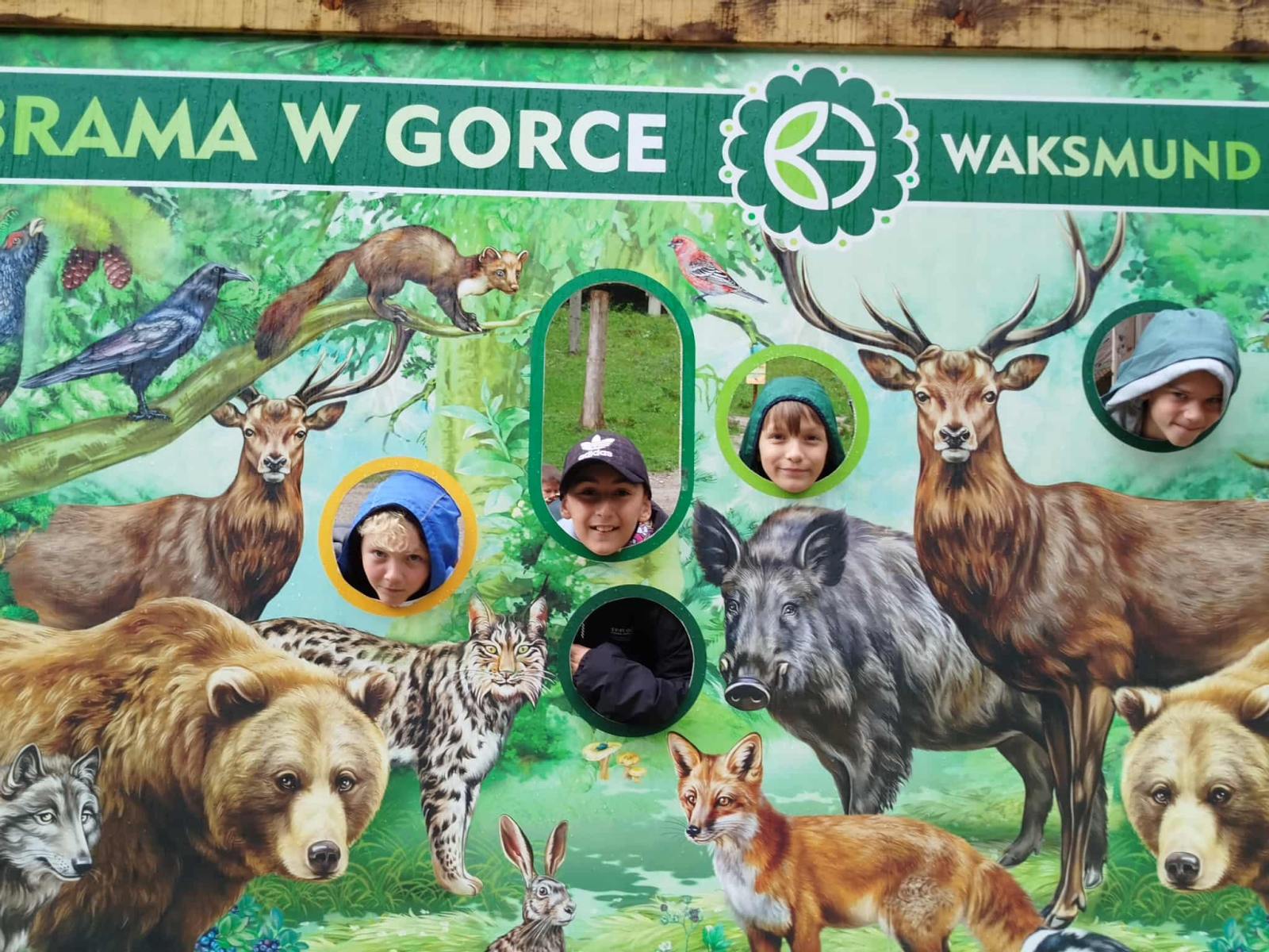 24 września 2025 r. uczniowie klas czwartych rozpoczęli nowy rok szkolny wyjątkową wycieczką do Centrum Przyrodniczo-Edukacyjnego Brama w Gorce. Już sama podróż autokarem była okazją do wesołych rozmów i wspólnych zabaw bez telefonów komórkowych, za to z prawdziwą integracją i radością ze wspólnego bycia razem. Na miejscu czekała nas niezapomniana przygoda. Przewodnicy z pasją opowiadali o cudach natury, a ich słowa wzbogacały niespodziewane spotkania ze zwierzętami, które- mimo deszczowej pogody- postanowiły wyjść nam na powitanie. Spacer po ścieżce w koronach drzew, wejście na aż dwie wieże widokowe oraz warsztaty tworzenia naturalnych magnesów sprawiły, że ten dzień stał się naprawdę wyjątkowy.