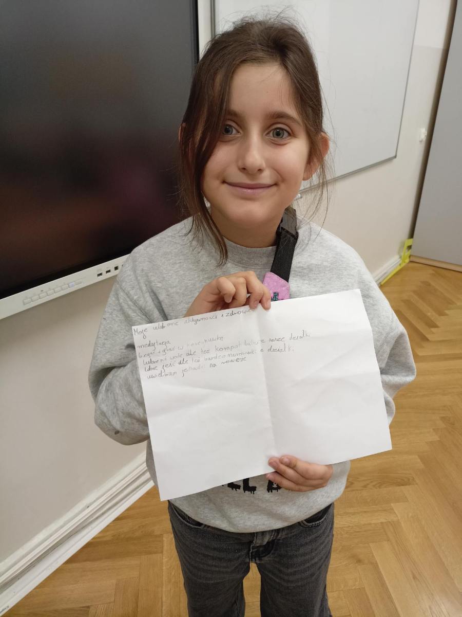 W czasie zajęć uczniowie poszerzyli swoją wiedzę na temat zdrowych i szkodliwych produktów spożywczych. Poznali definicję zdrowia i żywności przetworzonej, wymieniając produkty kojarzone z tą kategorią artykułów. Dowiedzieli się, co jeść, by zdrowo się rozwijać.