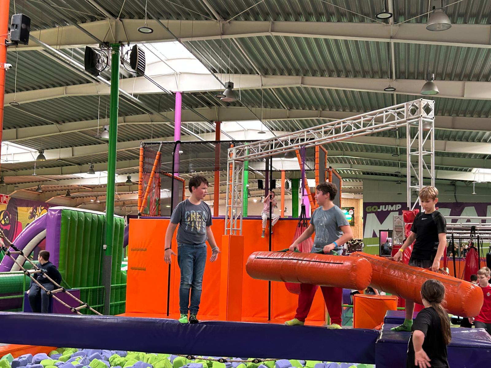 rozrywki na ul. Sikorki. Podczas zabaw w Go-Jumpie wszyscy z entuzjazmem skakali na trampolinach ćwicząc równowagę, nurkowali w basenach z gąbkami, a także tworzyli wesołe układy i wspólne skoki. Z kolei w Go-Air korzystali z dmuchanych zjeżdżalni, torów przeszkód, tuneli i zjeżdżalni, co sprawiło im mnóstwo frajdy i pozwoliło na rozwijanie sprawności fizycznej, refleksu i koordynacji. Wszystkie zabawy angażowały uczniów do wspólnej zabawy, odbywały się w zgodnej atmosferze, pełnej uśmiechów i wzajemnej pomocy. Instruktorzy i wychowawcy dbali o bezpieczeństwo i czuwali nad właściwym