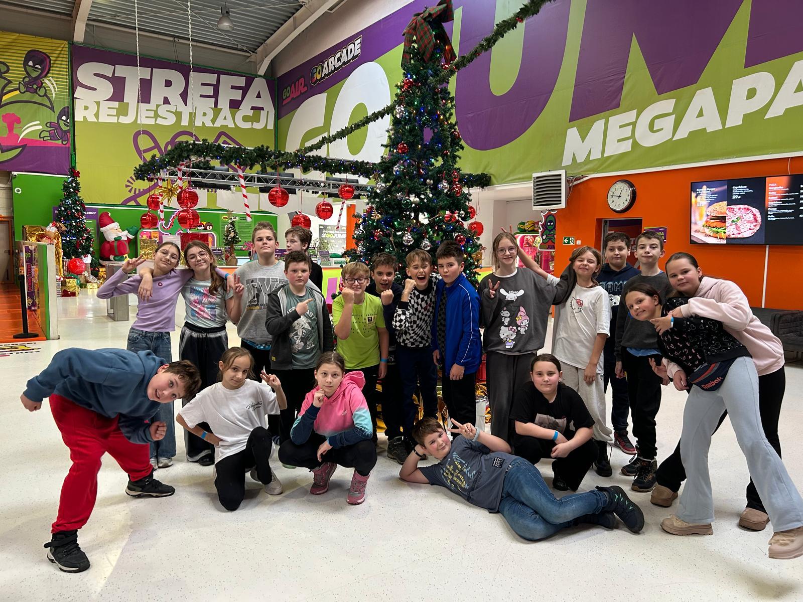 9 grudnia 2025 r. uczniowie klasy 5b spędzili niezapomniany dzień w parku trampolin Go Jump, łącząc świętowanie Mikołajek z klasową integracją. Dzieci korzystały z dwóch stref zabawy: Go Air i Go Jump. W pierwszej z nich czekały na nie dmuchańce, na których mogły skakać, wspinać się i wyładować energię. Z kolei w strefie Go Jump uczniowie szaleli na dużych trampolinach, wykonując różne skoki i akrobacje.