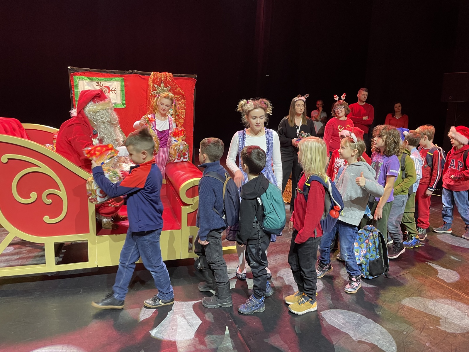 5 grudnia 2025 r. uczniowie klasy 1a przeżyli dzień, który na długo zapisze się w ich pamięci – zostali zaproszeni do NCK na  spotkanie z Mikołajem. Jednak zanim pojawił się najbardziej wyczekiwany Gość, dzieci przeniosły się do świata teatru.  Uczniowie obejrzeli spektakl pt. „Niesamowite przygody Ruperta Greena” – pełną magii, humoru i niespodziewanych zwrotów akcji opowieść o rodzeństwie, Alicji i Piotrze, którzy zapomnieli, co znaczy być razem.  Przedstawienie zachwycało muzyką na żywo, interakcją z publicznością oraz magicznymi momentami.  Po  spektaklu nadszedł moment kulminacyjny – na scenie pojawił się długo oczekiwany Mikołaj, który wjechał w pięknych saniach, pełnych koszy z prezentami. Podczas wręczania upominków uczniowie klasy 1a mieli okazję zaprezentować swoje talenty: śpiewali piosenki, recytowali wiersze i z ogromną radością występowali na scenie. Jednym słowem – było magicznie, radośnie i bardzo świątecznie. To spotkanie z pewnością na długo pozostanie w ich sercach.
