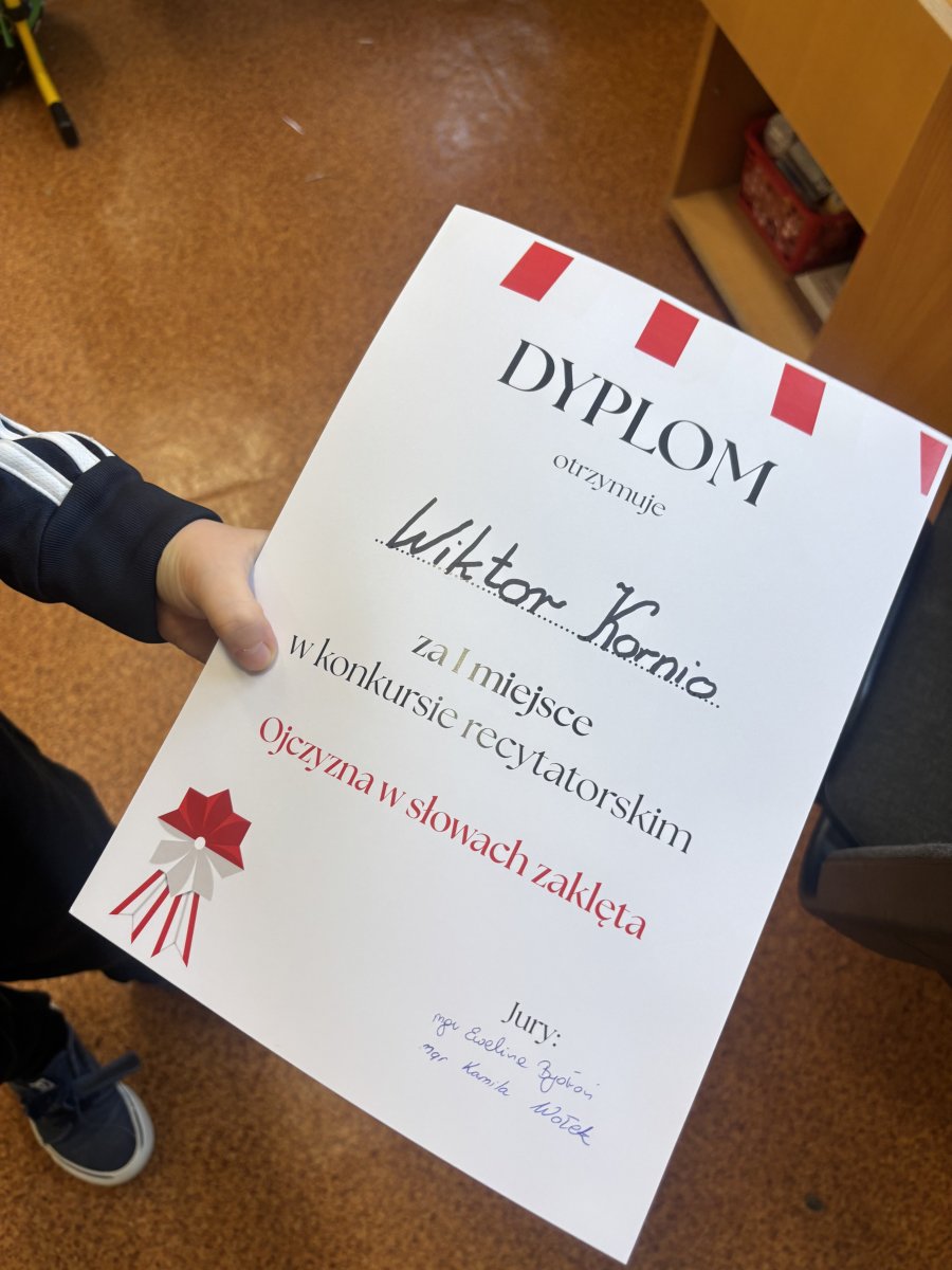 W świetlicy szkolnej odbył się konkurs recytatorski „Ojczyzna w słowach zaklęta” dla uczniów klas I–III. Każdy uczestnik zaprezentował wybrany utwór o tematyce patriotycznej, a jury oceniało występy według następujących kryteriów: