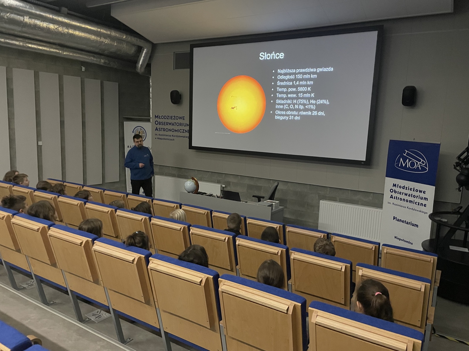 11 grudnia 2025 r. uczniowie klasy 2B wzięli udział w wyjeździe edukacyjnym do Młodzieżowego Obserwatorium Astronomicznego w Niepołomicach. Podczas wizyty uczestnicy mieli okazję poszerzyć swoją wiedzę z zakresu astronomii, zapoznać się z pracą obserwatorium oraz w ciekawy sposób zgłębić tajemnice kosmosu. Jednym z najciekawszych punktów programu był seans w planetarium, podczas którego uczniowie mogli odbyć wirtualną podróż po Układzie Słonecznym i poznać fascynujące gwiazdozbiory. Wyjazd był wartościowym i inspirującym doświadczeniem.