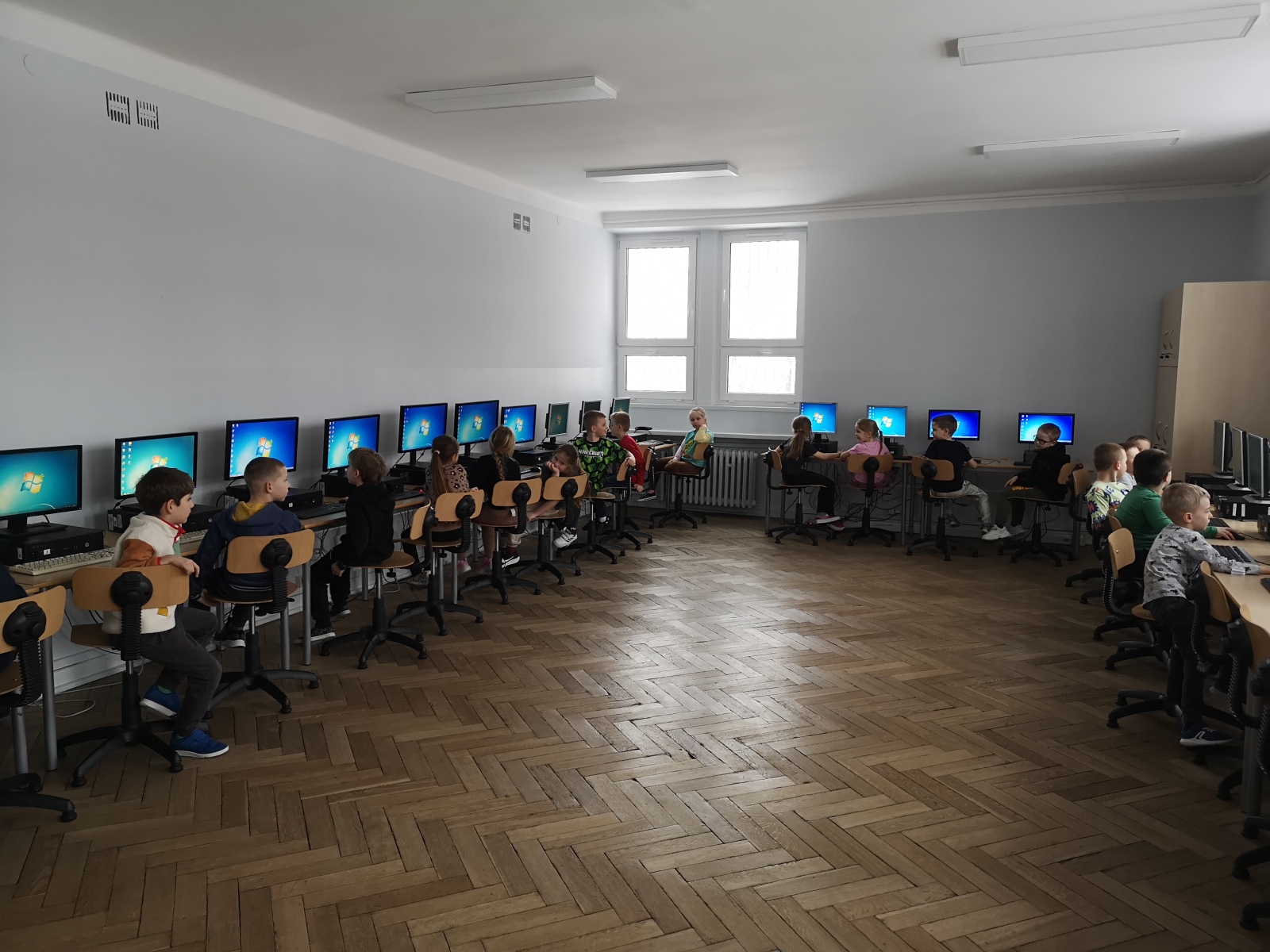 W bieżącym roku szkolnym uczniowie klas pierwszych mają możliwość uczestniczenia w kole informatycznym „ENTER”, które w przyjazny i ciekawy sposób wprowadza ich w świat nowych technologii. Podczas zajęć dzieci poznają podstawy budowy komputera oraz uczą się obsługi programu graficznego, odkrywając różnorodne funkcje ułatwiające pracę, w tym przydatne skróty klawiszowe. Uczestnicy zgłębiali także sekrety klawiatury oraz pracy z tekstem. Dużym zainteresowaniem cieszy się praca na platformie edukacyjnej Genially, gdzie uczniowie rozwiązują  zadania z zakresu matematyki, grafiki komputerowej, kodowania i dekodowania informacji. Zajęcia rozwijają logiczne myślenie, kreatywność oraz umiejętność współpracy, a nauka odbywa się w atmosferze zabawy i odkrywania.