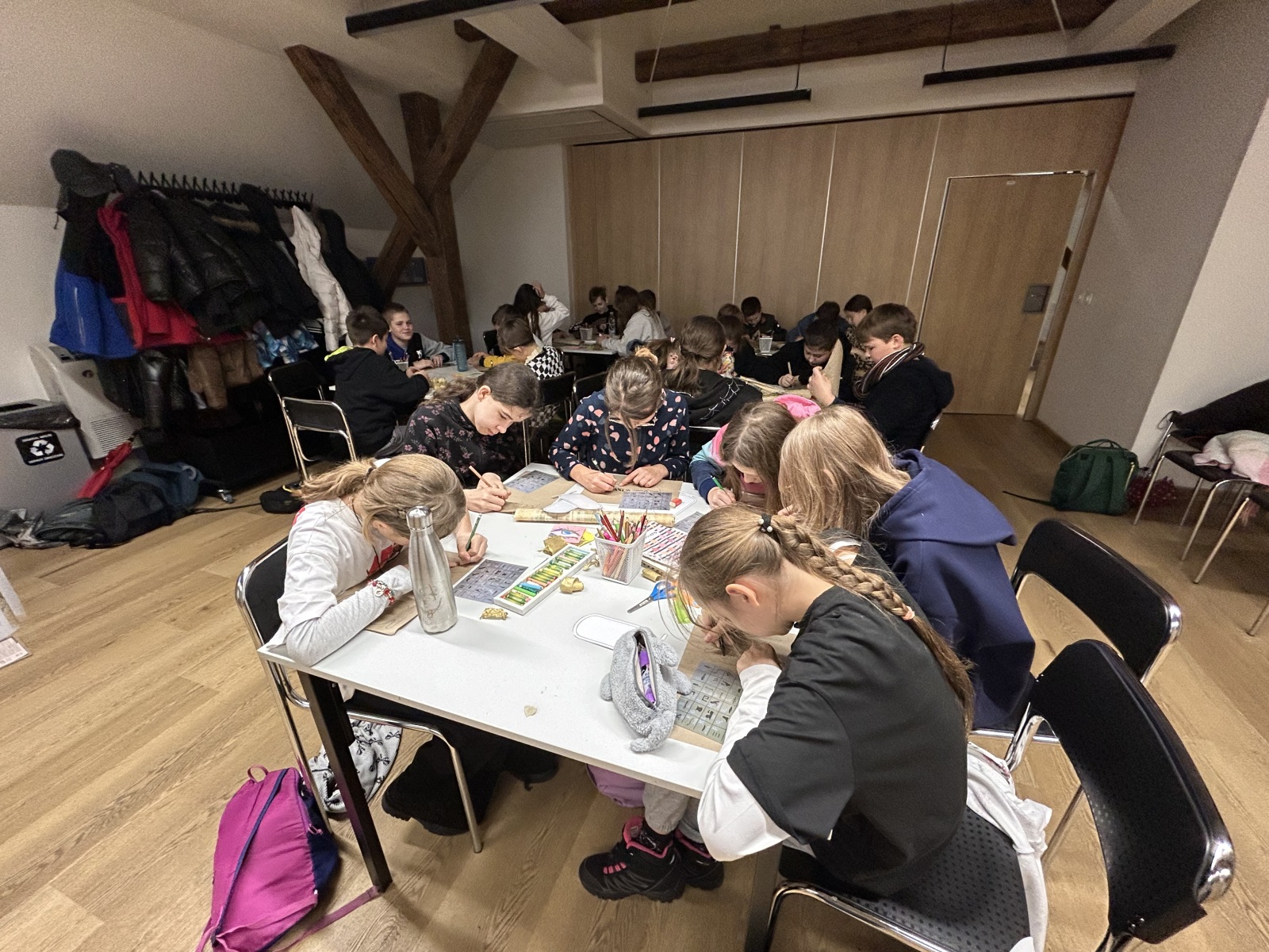 Na warsztatach uczniowie własnoręcznie tworzyli magnesy z liści i szyszek, oglądali struktury liści pod mikroskopem, a na zakończenie mieli możliwość zakupu pamiątek. Był też czas na zabawę – zarówno na placu zabaw, jak i podczas zwiedzania mini zoo, w którym czekały na nich kozy, kaczki i króliczki.