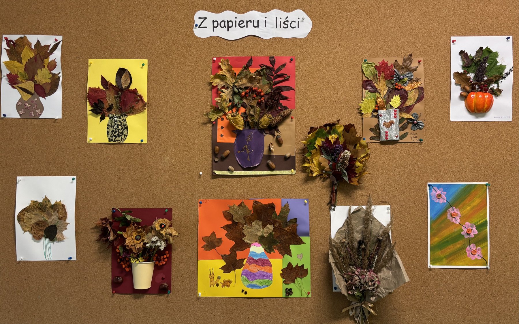 W październiku w klasach I–III został przeprowadzony konkurs plastyczno-techniczny „Z papieru i liści – sztuka jesieni”, którego celem było rozwijanie kreatywności i wyobraźni dzieci poprzez działania twórcze, a także kształtowanie wrażliwości estetycznej oraz poznawanie barw i symboli jesieni.