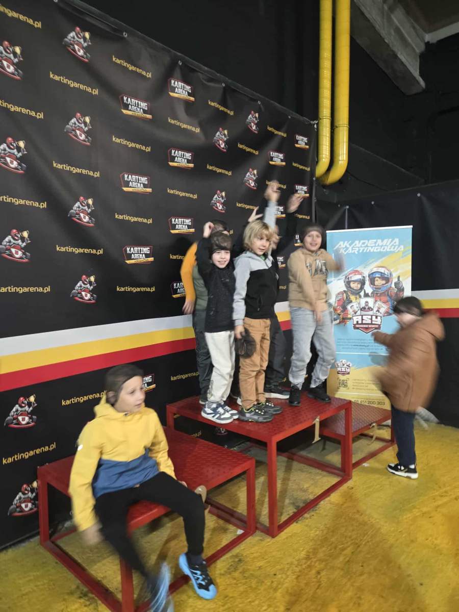 30 września 2025 r., z okazji Dnia Chłopca, uczniowie klasy 3a Szkoły Podstawowej nr 80 w Krakowie wzięli udział w pełnym emocji wyjeździe na tor gokartowy Racing Kart. Było to wyjątkowe doświadczenie pełne radości, śmiechu i sportowych wrażeń. Dzieci z ogromnym entuzjazmem podjęły gokartowe wyzwanie. Nikt się nie bał, każdy chętnie wsiadał do pojazdu i próbował swoich sił na torze. Choć nie wszystkim poszło idealnie, najważniejsza była dobra zabawa oraz wspólnie spędzony czas. Już w drodze powrotnej uczniowie żywo dzielili się swoimi wrażeniami. Opowiadali o emocjonujących „wyścigach”, zabawnych sytuacjach i pierwszych gokartowych doświadczeniach. Na twarzach nie brakowało uśmiechu, a wielu z nich z entuzjazmem deklarowało chęć powrotu na tor. Dzieci były także dumne z siebie – z odwagi, jaką wykazały się siadając za kierownicą, i z tego, że spróbowały czegoś nowego. Uczniowie czuli się bezpiecznie i zaopiekowani dzięki profesjonalnym instruktorom oraz obecności wychowawców. Organizatorzy zadbali o każdy szczegół – od krótkiego szkolenia, poprzez sprzęt ochronny, aż po wsparcie na torze. Dzięki temu dzieci mogły w pełni cieszyć się zabawą, mając pewność, że wszystko odbywa się w bezpiecznych warunkach. Wyjazd był nie tylko okazją do dobrej zabawy, lecz także cenną lekcją – uczniowie uczyli się koncentracji, refleksu i przestrzegania zasad. Sprzyjał również integracji klasy, zdrowej rywalizacji oraz budowaniu pozytywnych relacji. To był dzień pełen pozytywnej energii, nowych doświadczeń i wspólnych przeżyć, który na długo pozostanie w pamięci wszystkich uczestników!